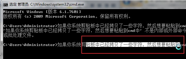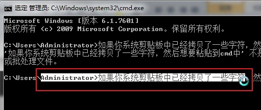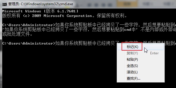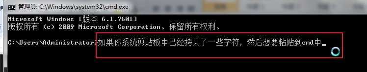 如果你系统剪贴板中已经拷贝了一些字符,然后想要粘贴到cmd中,那么就需要点击右键: