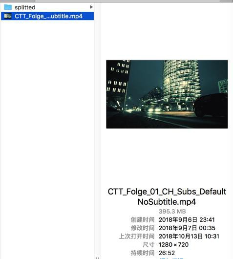 此处,之前用Handbrake从1.5G原始mp4压制出的小体积400多M的mp4: