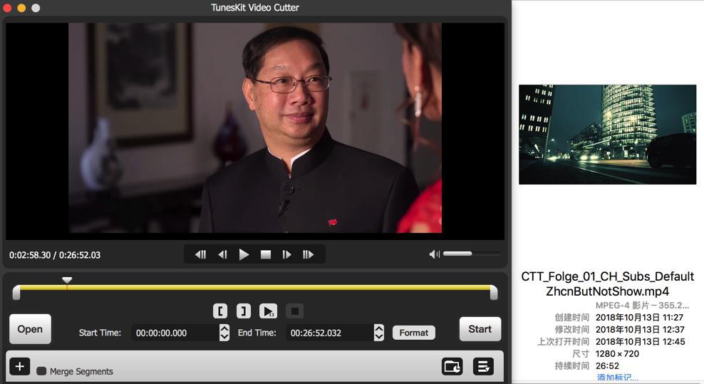 但是想要用来分割的TunesKit Video Cutter却不支持。