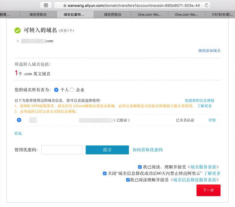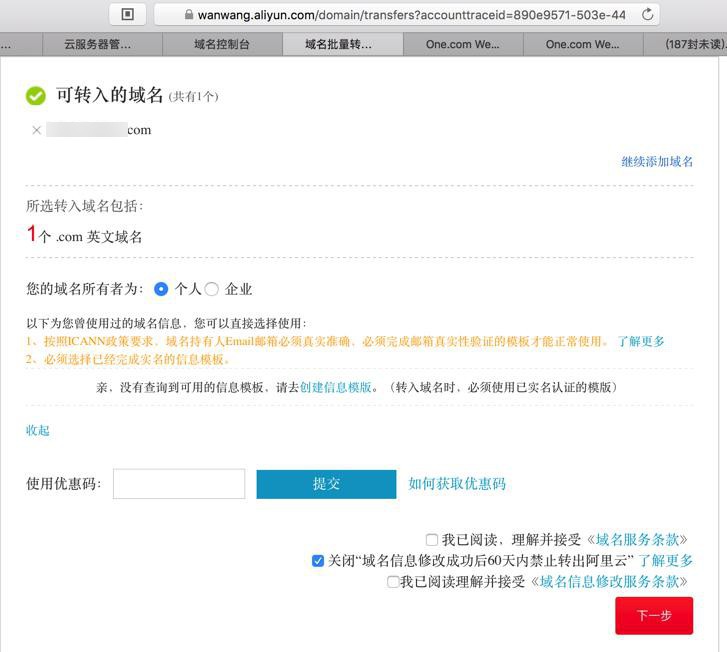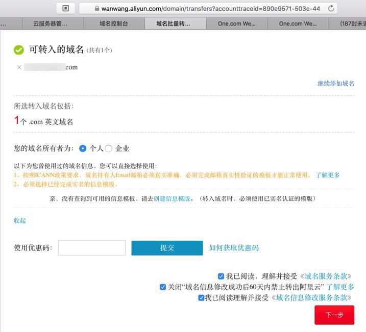 转载请注明:在路上 » 【记录】把one.com中的域名转入阿里云