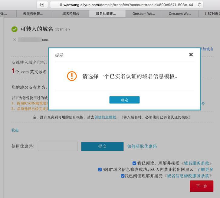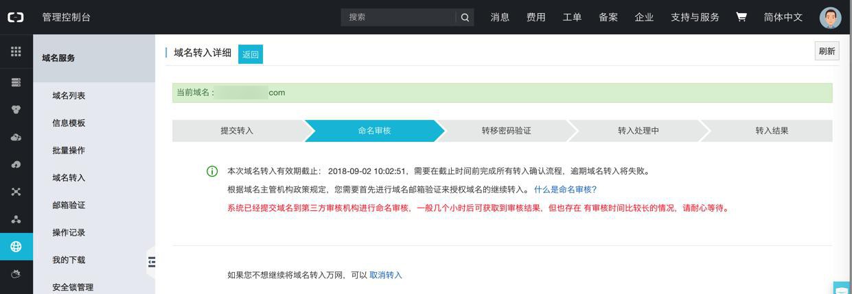 【已解决】域名转入阿里云在命名审核阶段转出者收不到邮件