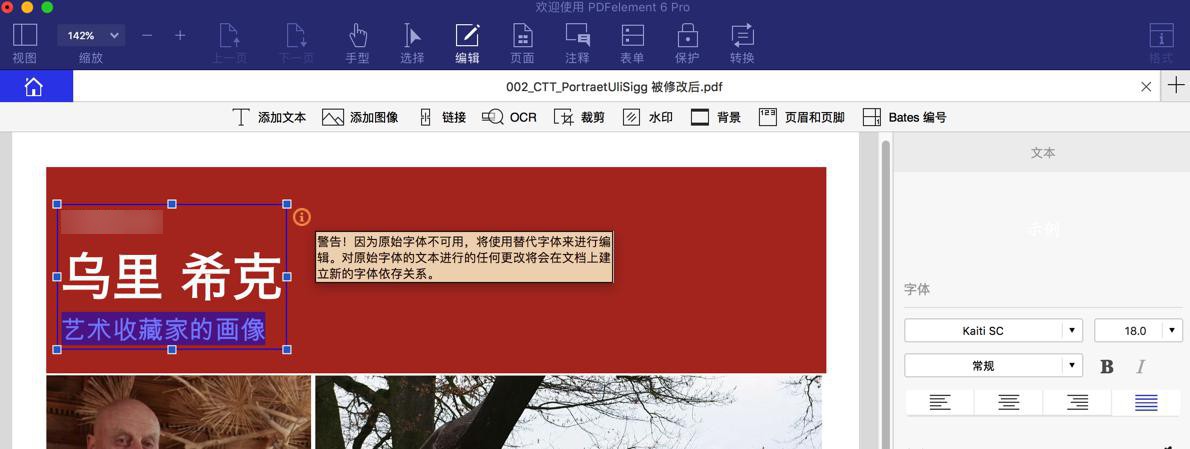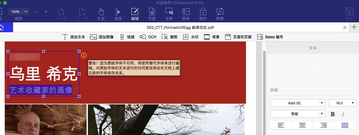 期间,当在PDFElement Pro 6中编辑Pdf时,选择某个中文字体,