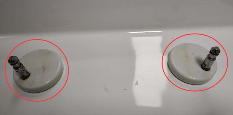盖上马桶盖后,底部2个圆的按钮,就凸出来了