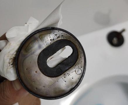 然后用更多纸巾,挨个用力擦掉 锈迹和油腻: