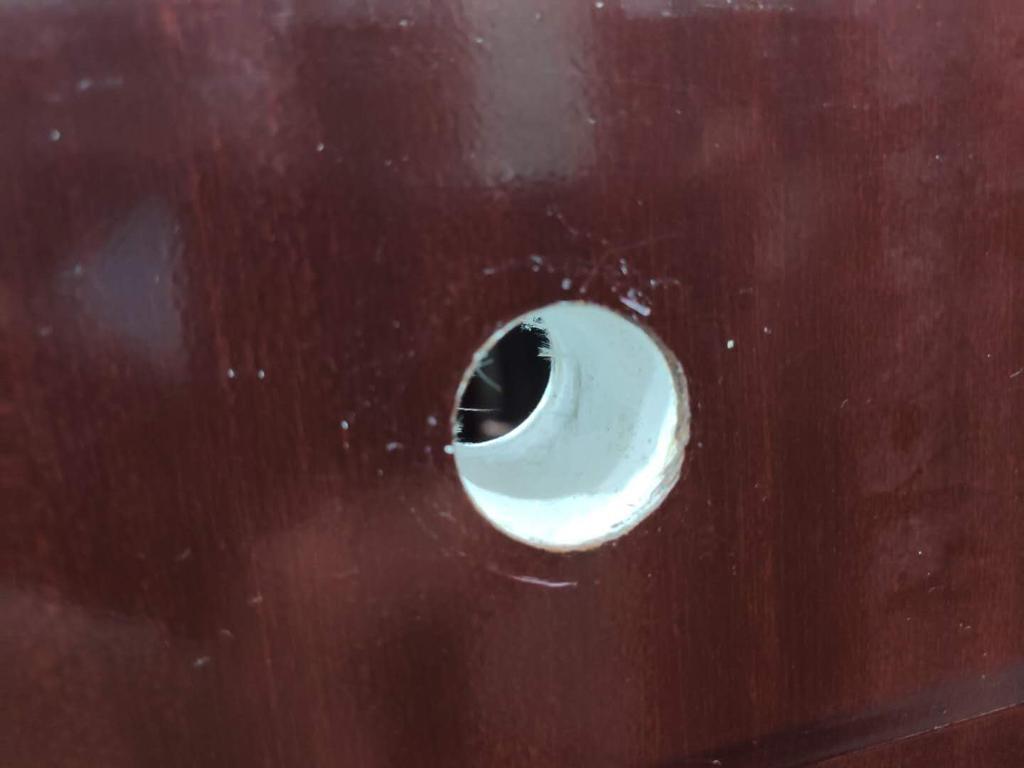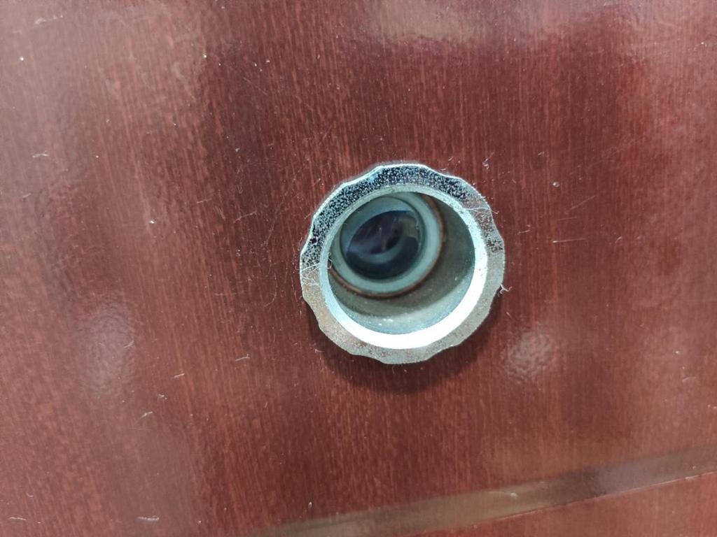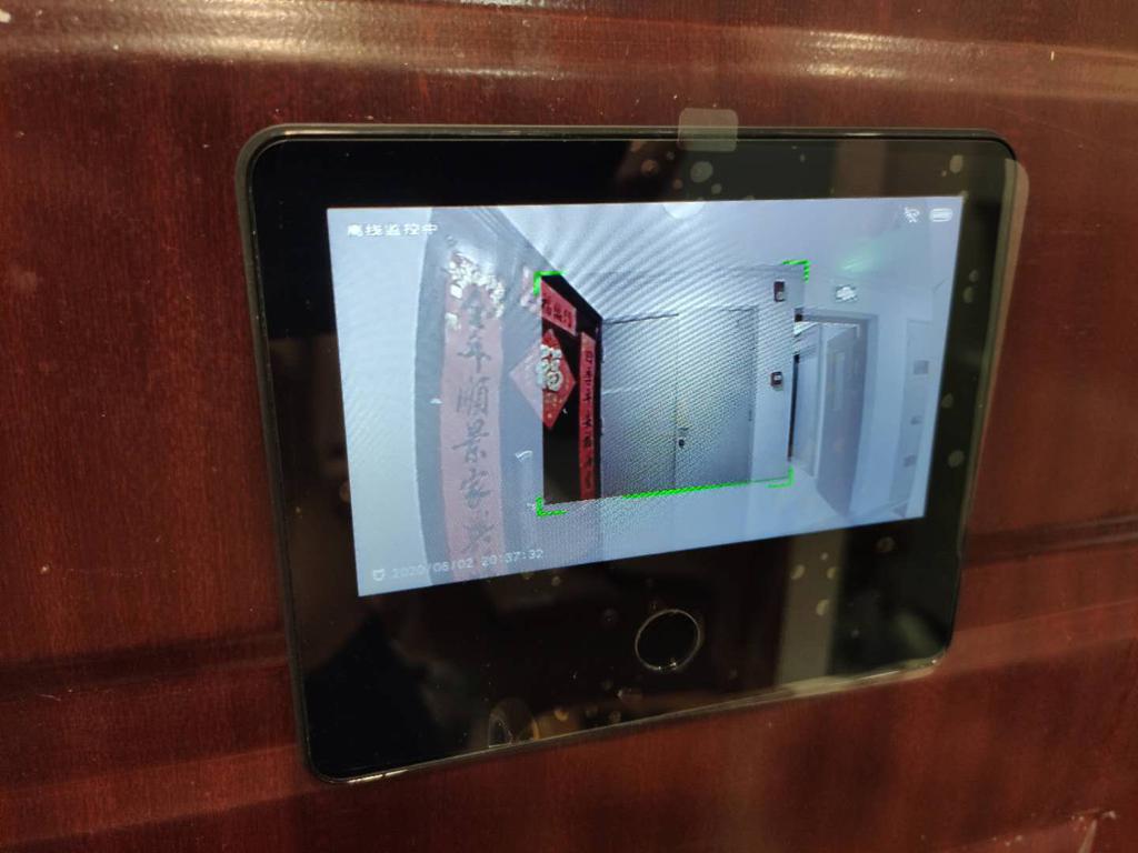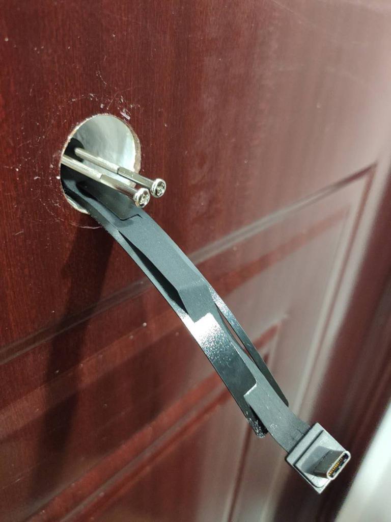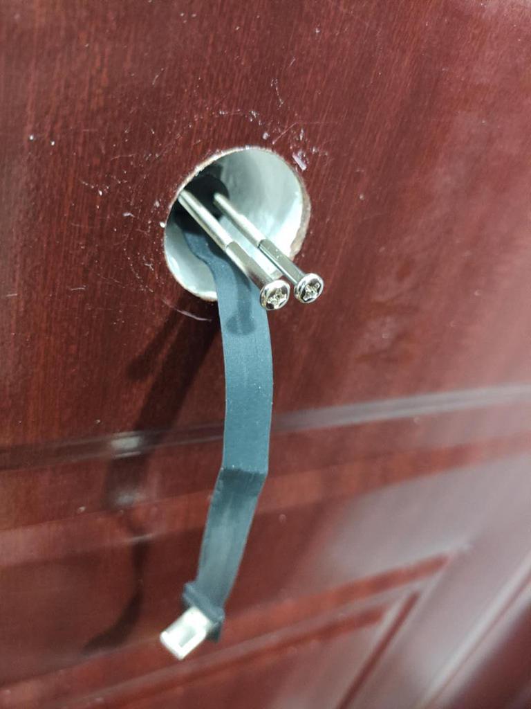 然后放到门的室内一面,挂上前面摄像头伸过来的螺丝上: