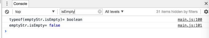 typeof(emptyStr.isEmpty)= boolean main.js:101 emptyStr.isEmpty= false |
