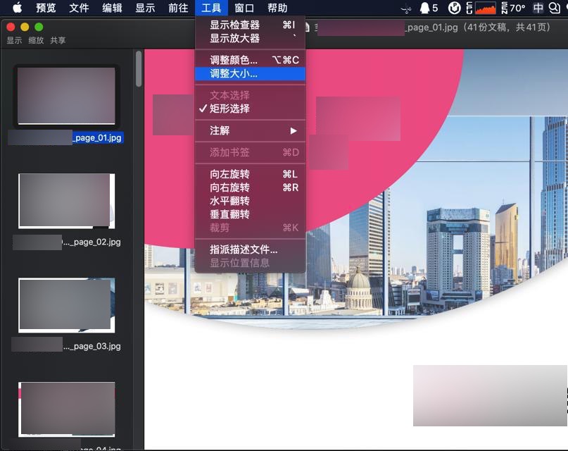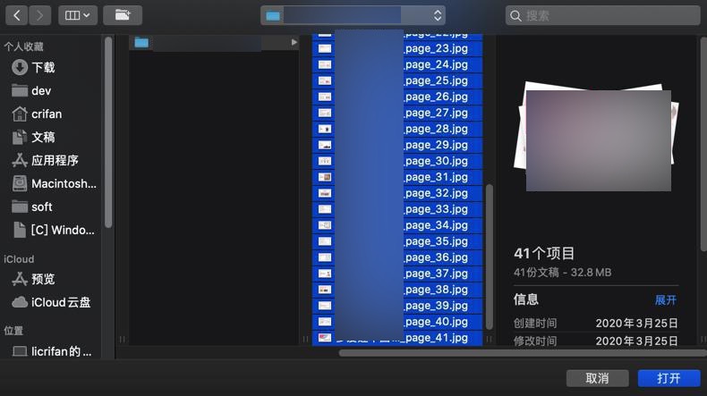 2.预览-》文件-》打开-》选择要缩放的多张图片(比如用Command+A全选某个文件夹中所有图片)