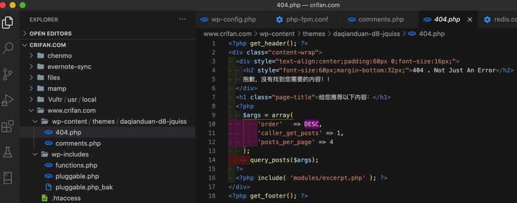 PHP message: PHP Warning: Use of undefined constant DESC - assumed 'DESC' (this will throw an Error in a future version of PHP) in /data/wwwroot/www.crifan.com/wp-content/themes/daqianduan-d8-jquiss/404.php on line 10"