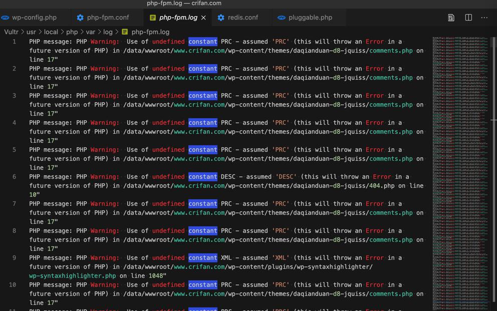 PHP message: PHP Warning: Use of undefined constant PRC - assumed 'PRC' (this will throw an Error in a future version of PHP) in /data/wwwroot/www.crifan.com/wp-content/themes/daqianduan-d8-jquiss/comments.php on line 17"