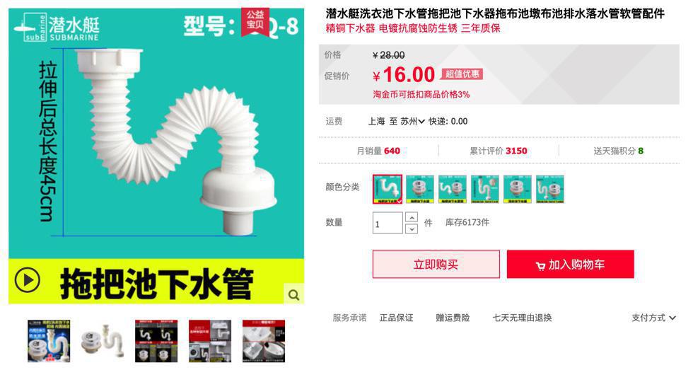 潜水艇洗衣池下水管拖把池下水器拖布池墩布池排水落水管软管配件-tmall.com天猫