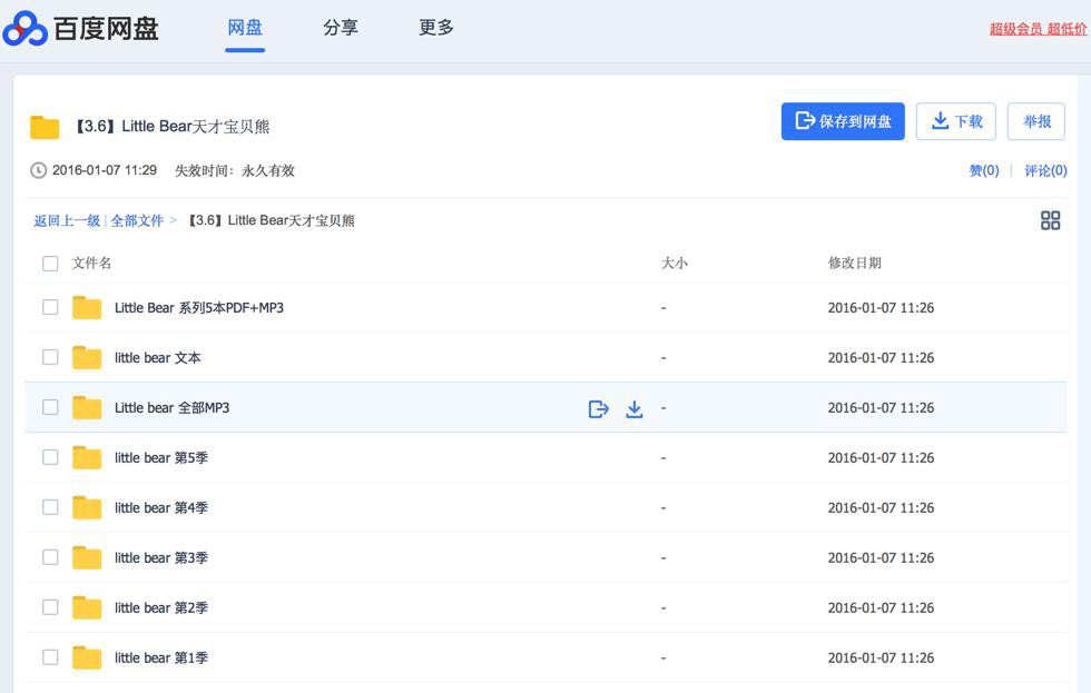 https://yun.baidu.com/s/1qXjycTQ#list/path=%2F【3.6】Little%20Bear天才宝贝熊