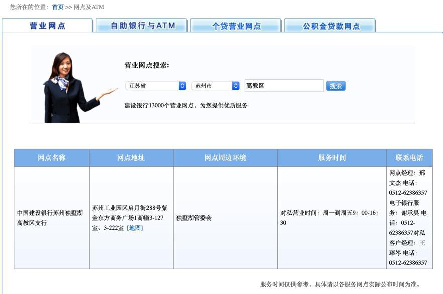 - 网点全称:中国建设银行苏州独墅湖高教区支行