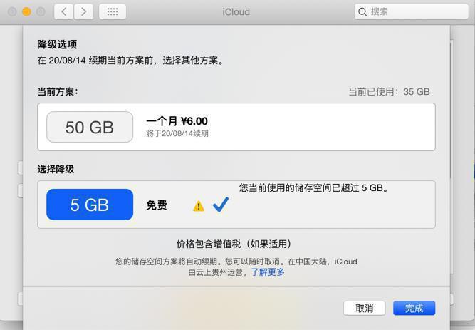 【未解决】iCloud存储空间降级