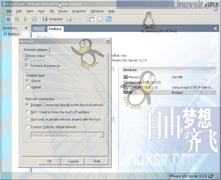 提要:本文介绍在VMware的Windows版本的使用方法;并以 VMware安装Fedora Core 4.0为实例来解说VMware 虚拟Linux的安装以及硬件配置等;