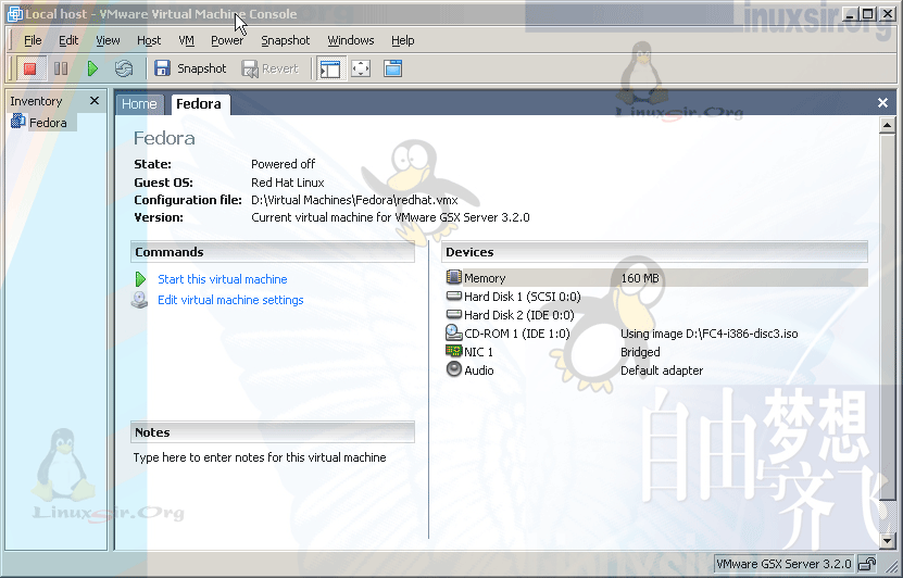 举例:我的机器上有个80G的磁盘,我分了一个FAT32的分区用来安装Windows的软件,体积大约是15G;这个分区用量已经达到8G左右,所以就在这个分区安装了VMware ;并把虚拟Fedora Core 4.0 虚拟硬盘也放在这个分区;
