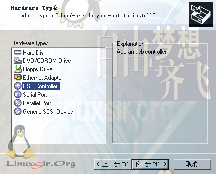 添加USB设备的支持:我想让在VMware虚拟的系统中能读USB接口的硬盘或者U盘;添加好后,到时Windows系统提示要安装VMware USB驱动,当您插入U盘时;让系统默认的驱动就行;