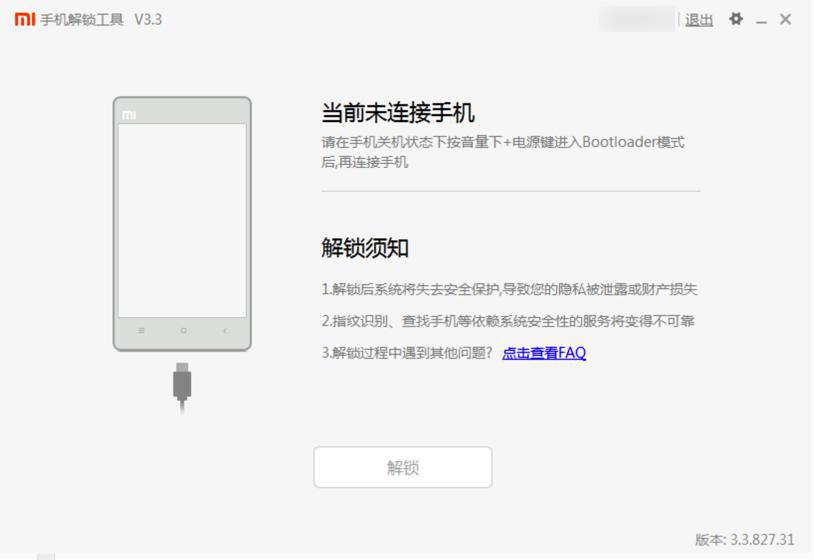 3.通过USB连接手机,点击 “解锁”按钮;
