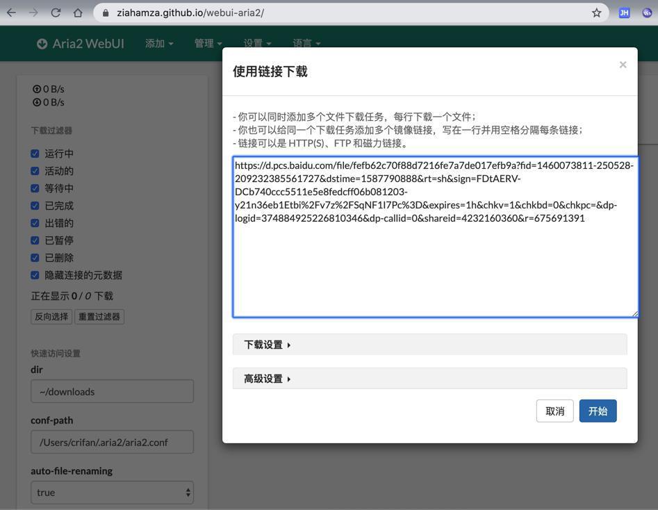 【未解决】Mac中尝试Aria2实现百度网盘全速下载