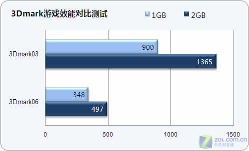 我们的测试方法是,先在默认配置下运行一遍所有测试项目,然后装上另一条1GB内存,在2GB的内存配置下再重复测试一遍,最后对比前后两次的测试数据,从而得出结论。