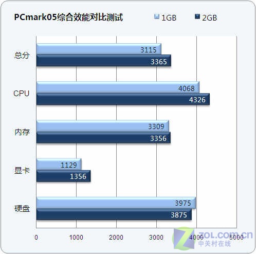 下面,我们先来看看内存从1GB升级至2GB后,综合效能究竟提高了多少?