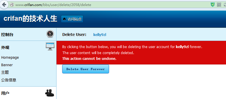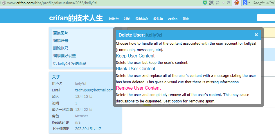 所以只好尝试,看看是否有删除用户,然后顺带删除所有的该用户的帖子的。