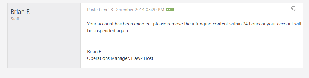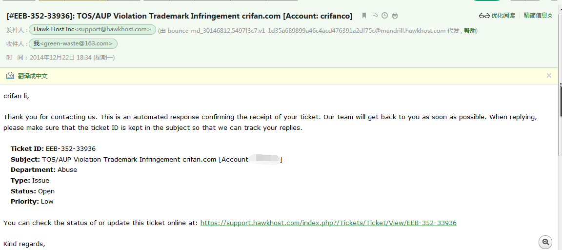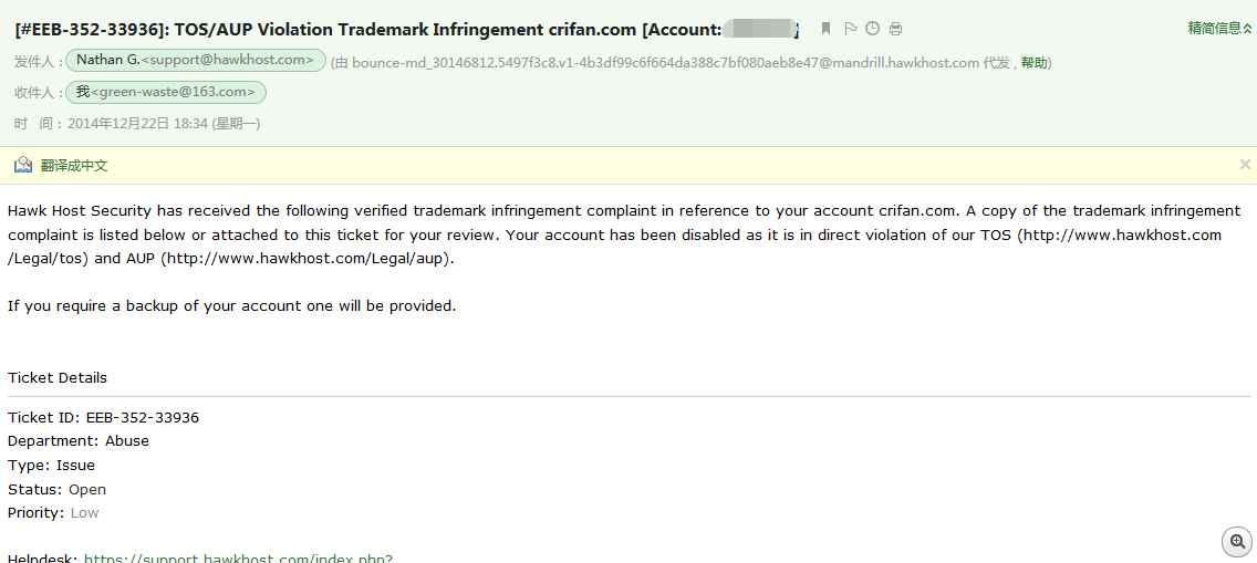 转载请注明:在路上 » 【记录】hawkhost上竟然说我crifan.com网站侵权而禁止掉了我的账户:This Account Has Been Suspended