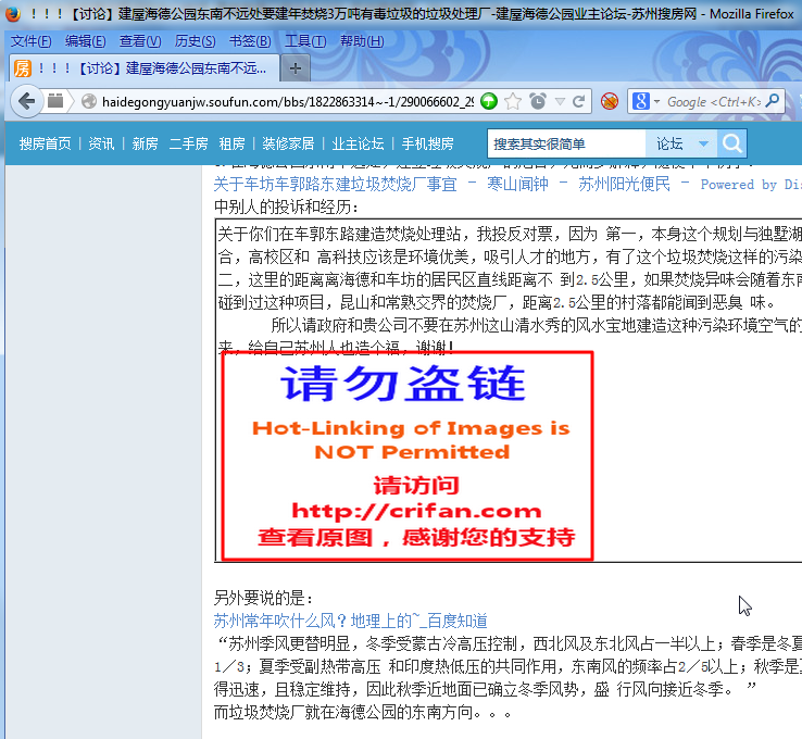 然后虽然打开一个之前引用我网站图片的帖子,果然看到了防盗链了: