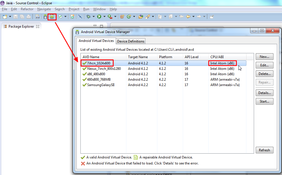 之前本地建立的,好几个,包括x86的android的image的AVD