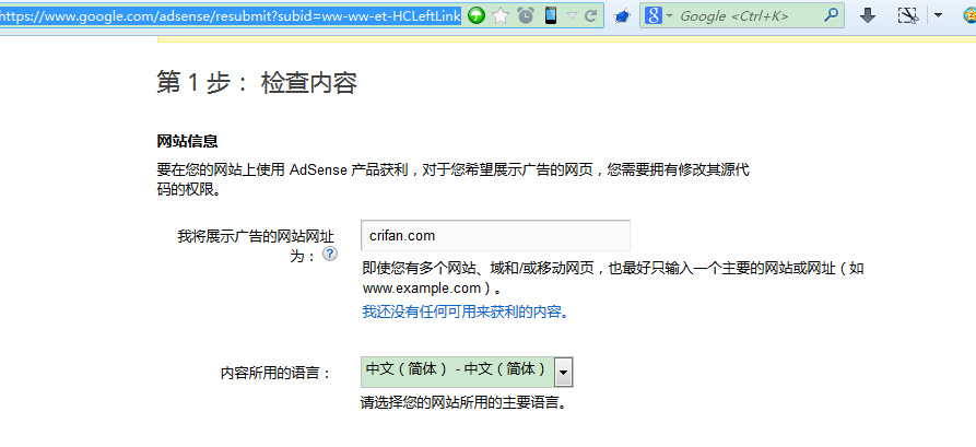之前申请过google adsense: