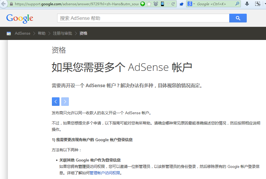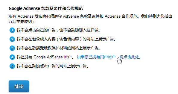 好像我是没有Google AdSense账户,所以还是回到前面页面,重新继续注册。