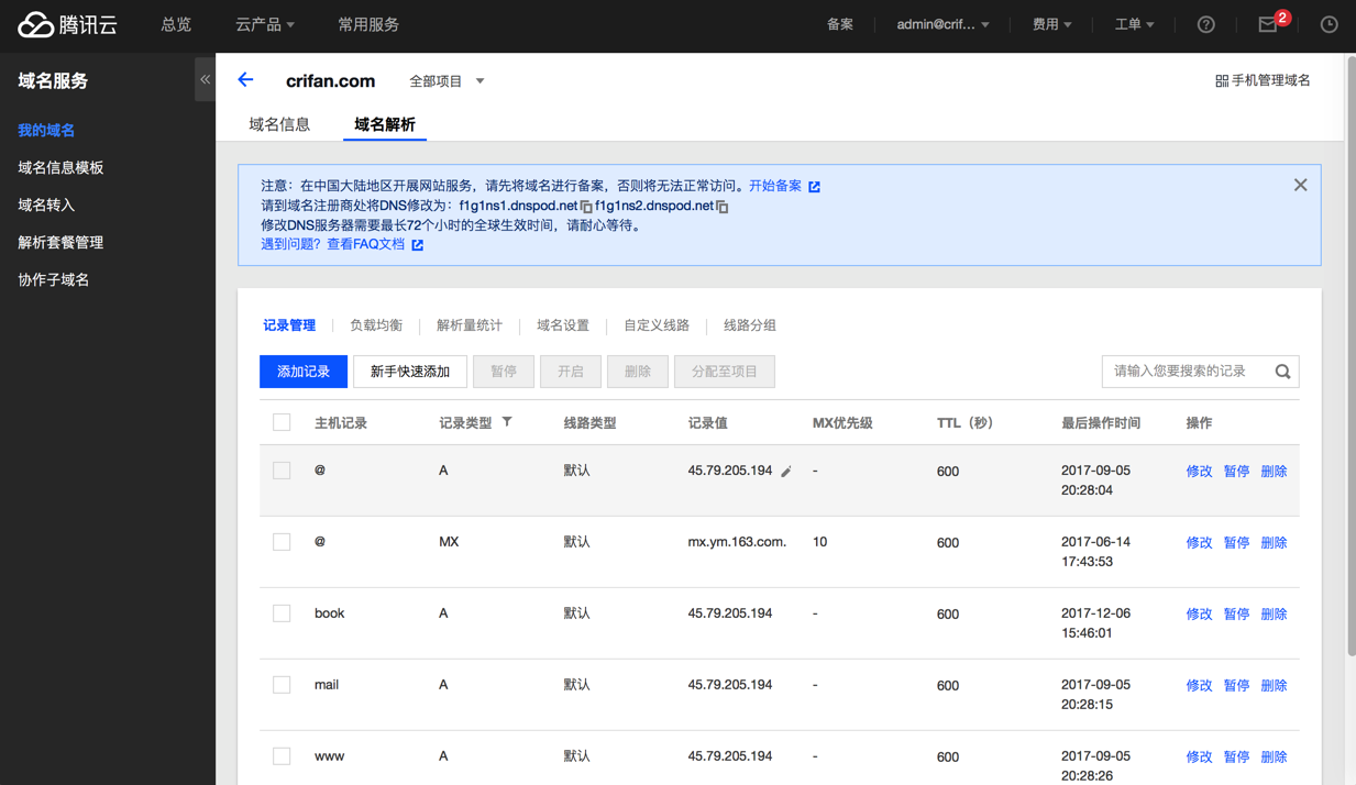 之后,需要去更新DNS: