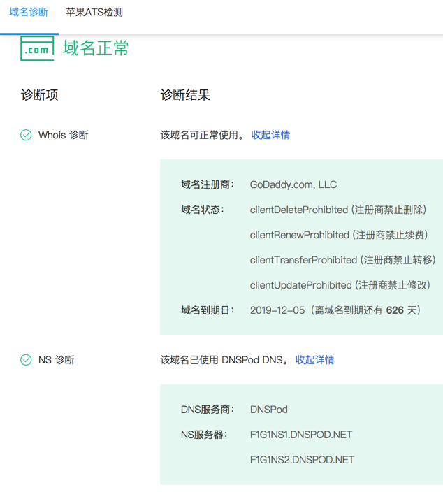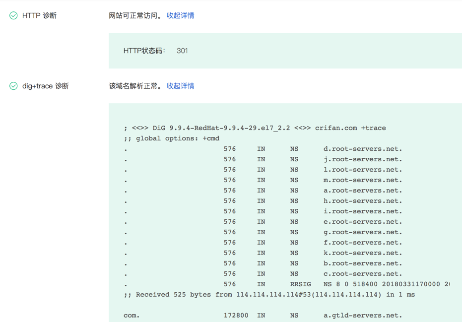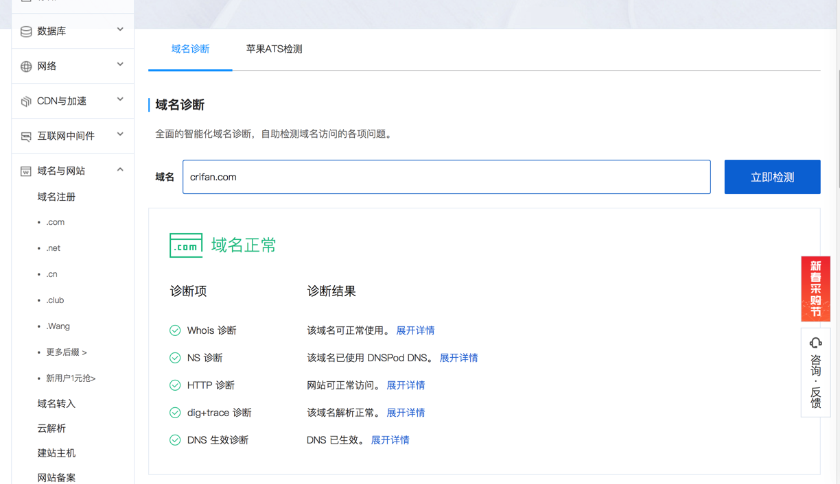 点击 域名健康 -》 立即诊断