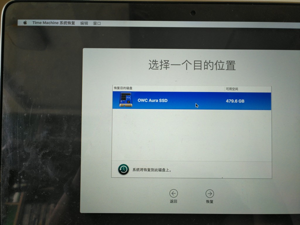 后续恢复系统期间,是可以识别出新换的480G的OWC Aura的SSD的,