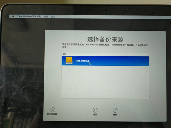 选择备份来源,选中此处检测出来的备份盘:Mac_Backup
