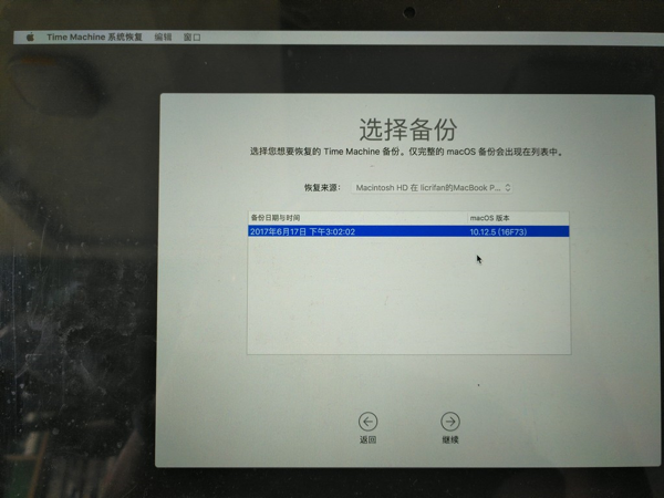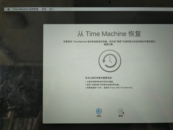 此处感觉第一个“从Time Machine备份进行恢复 ”,或许可以使得:
