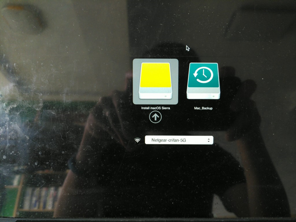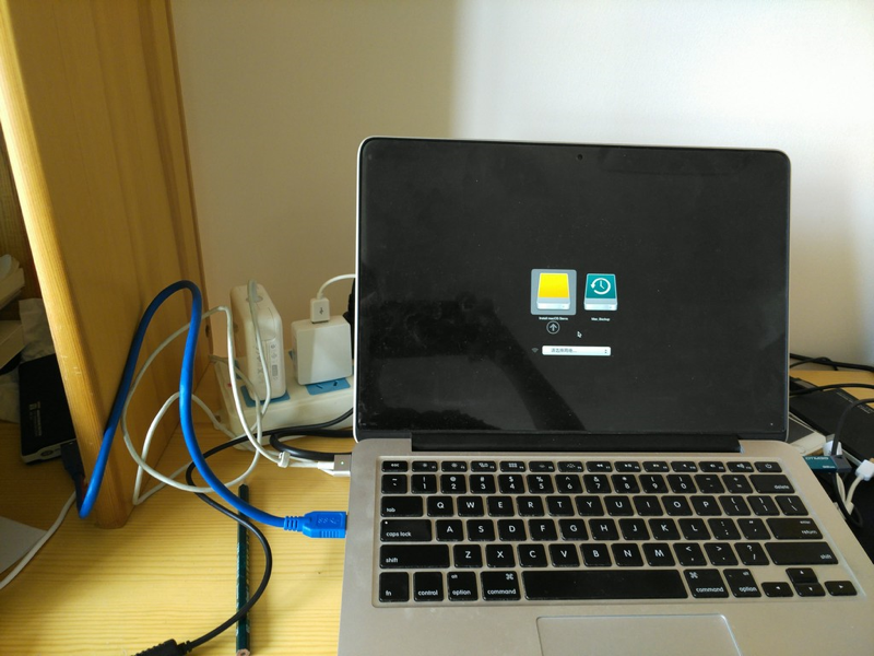 所以,重启关机后,把之前的Mac的备份的移动硬盘插上去,重新按Option键启动,然后可以看到两个: