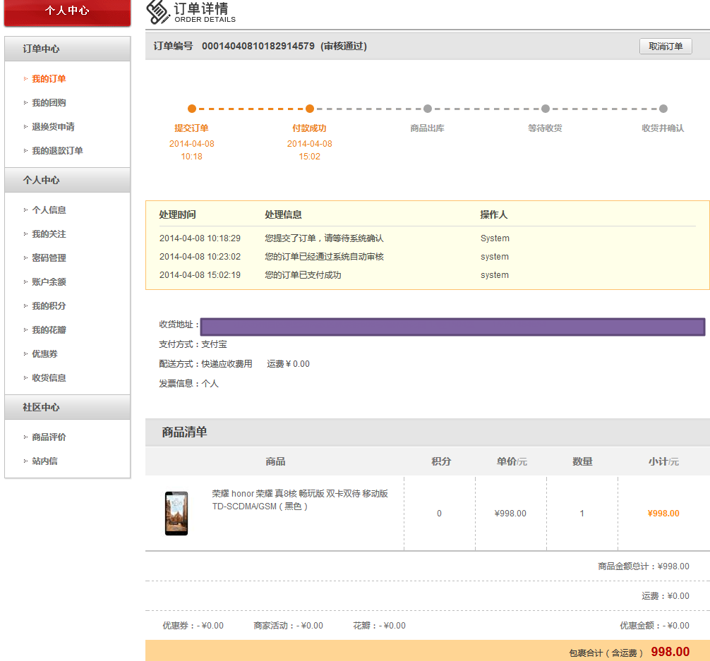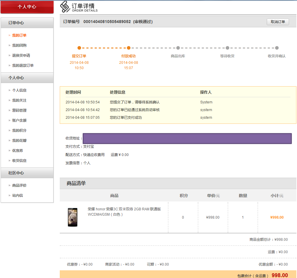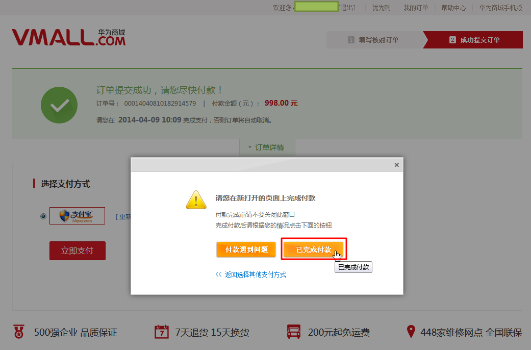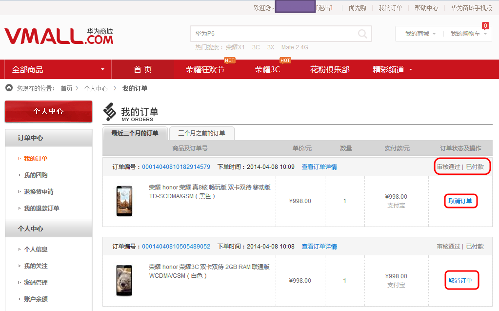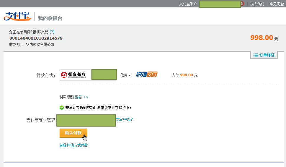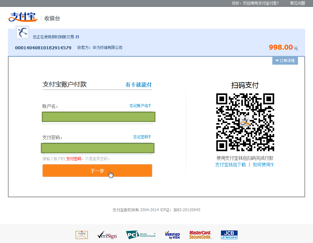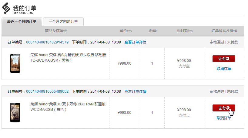 转载请注明:在路上 » 【记录】抢购到了华为的荣耀3C和荣耀畅玩版后去支付购买