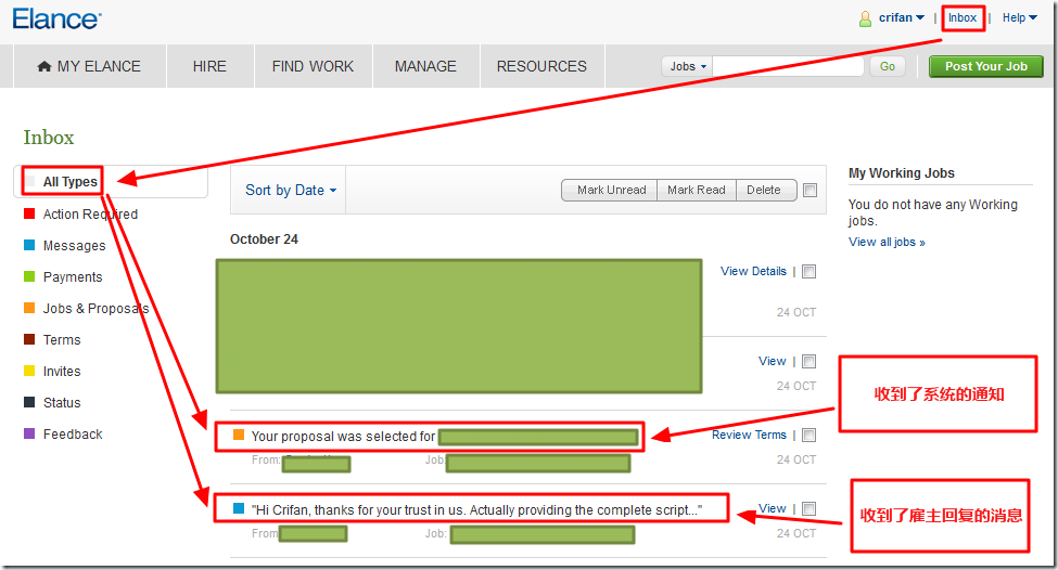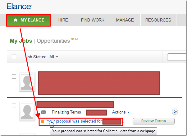 2.然后去你的Elance中,也可以看到对应的任务,显示出: