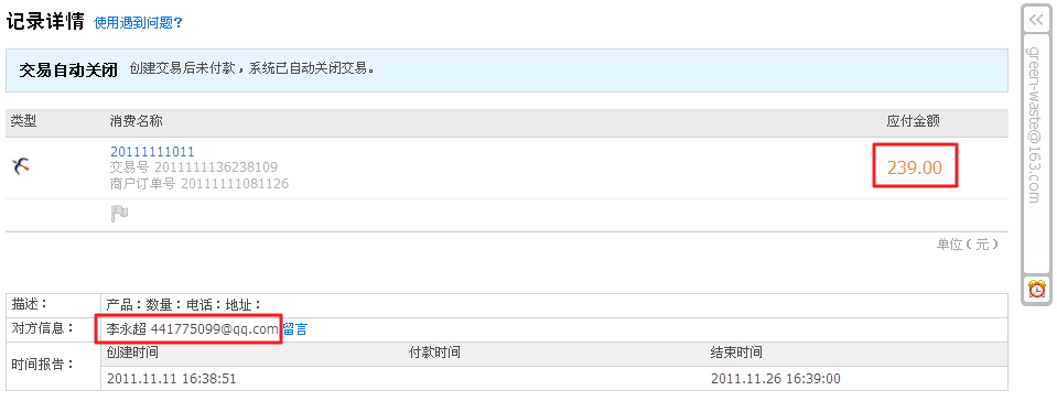 但是其还是功能做得有bug啊,既然该关闭了,为何还是显示等待我付款,结果倒是等我转账付款完毕了,然后才显示关闭,不过故意坑爹吗!!!