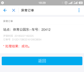 某次在使用支付宝扫码永安自行车的车桩上的二维码后,虽然提示成功,但是车没法取出来,车子还在桩上。再次扫码后,然后显示异常。
