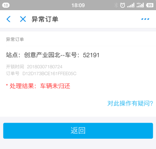 看来支付宝少扫码取车,或者说永安自行车的系统。做的还是不够好。有bug。