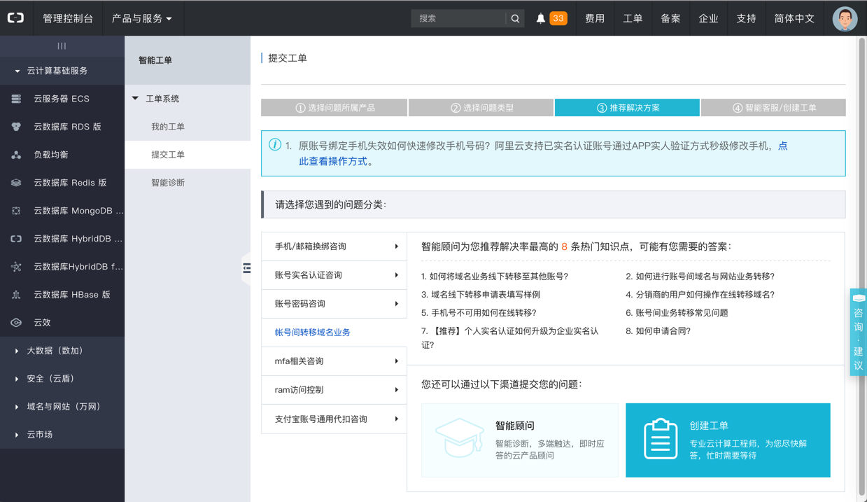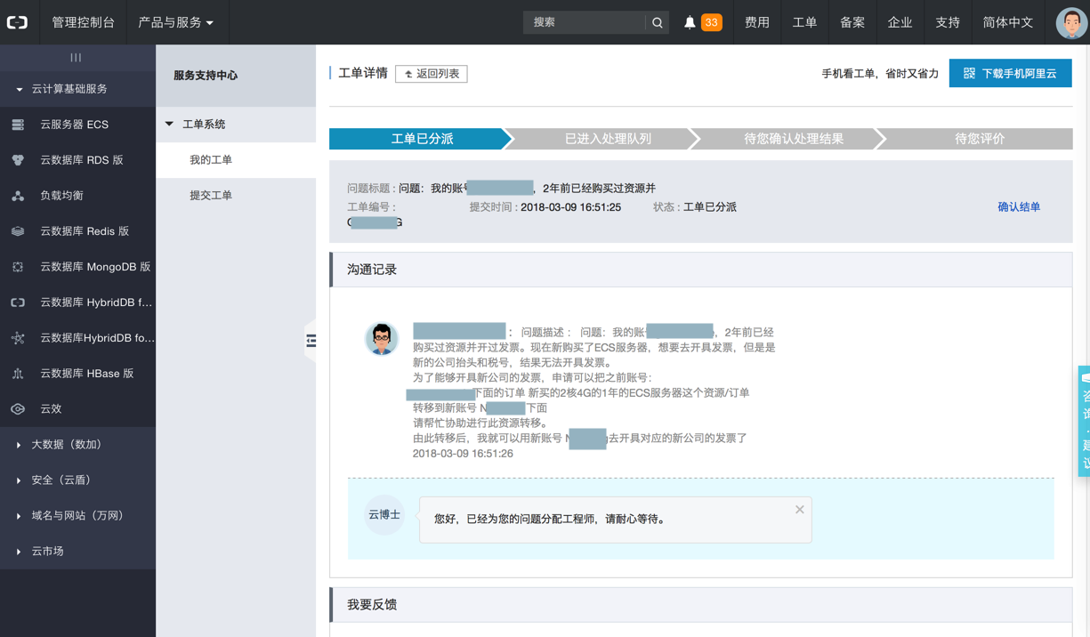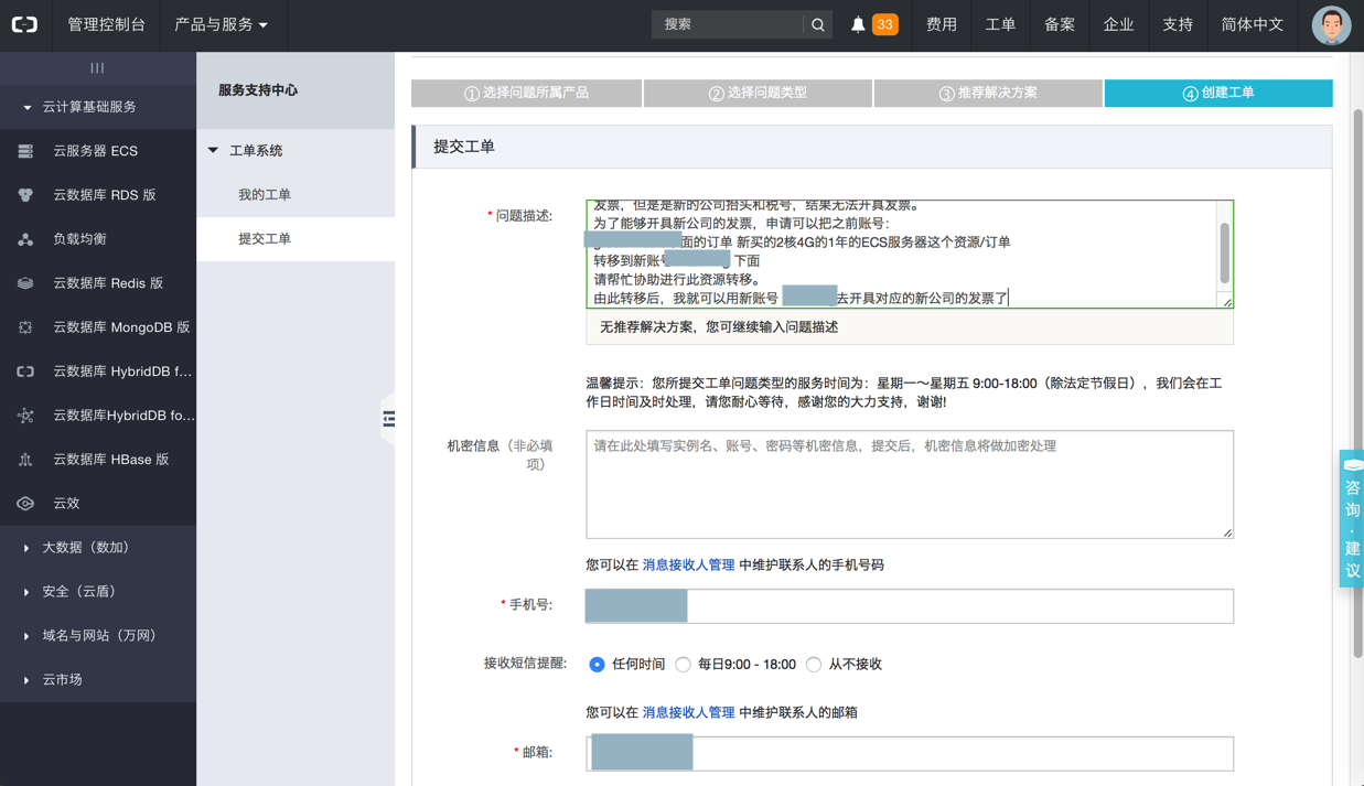 算了,听同事的建议,去试试提交工单,申请把其他购买的服务器,转移到另外一个(公司的)账号上去