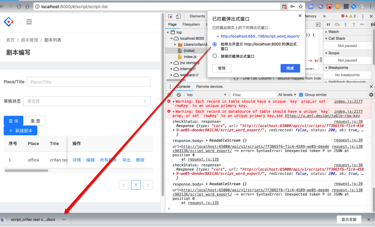 reactjs中,去下载到这个docx文件,然后保存到本地(浏览器内部临时保存),然后再去下载保存到用户的本地