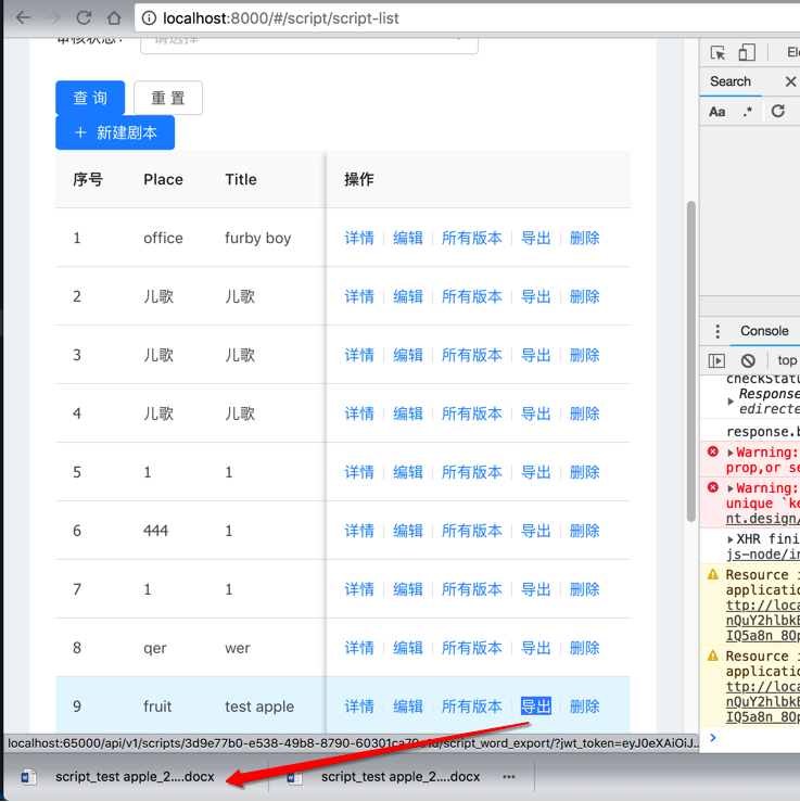const exportScritpUrl = scriptWordExportUrl(record.id, encodedJwtToken)