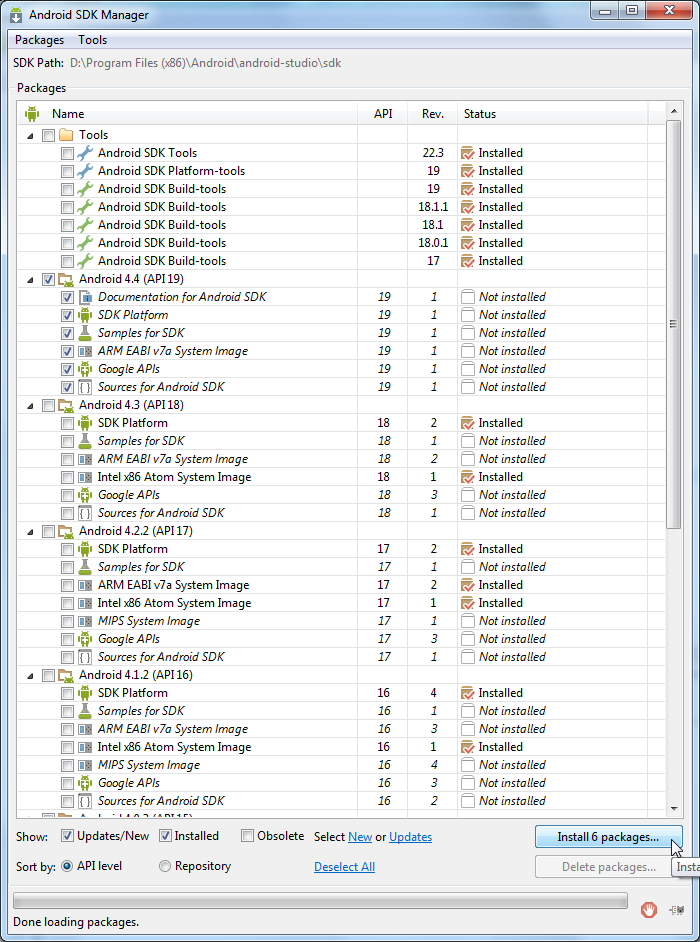5.再去安装Android 4.4的东西: