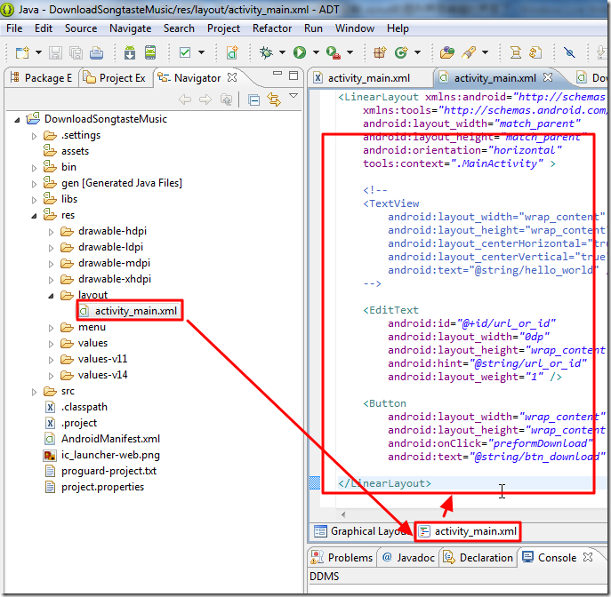 4.然后就是出现了:xml和Graphical Layout界面了: