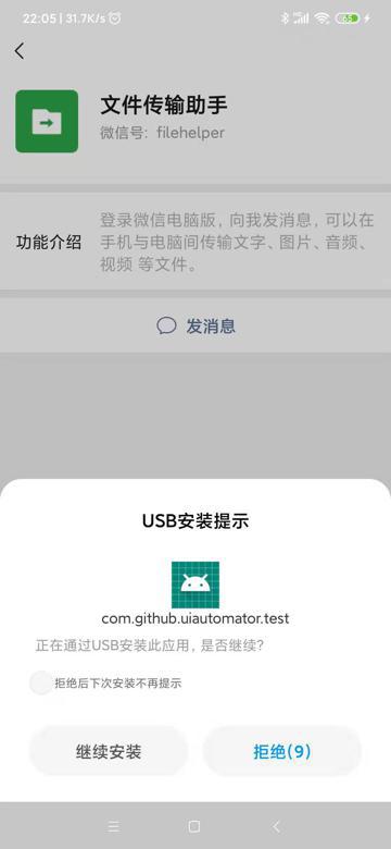 此处小米9,之前被另外项目调试过,所以安装了ATX或uiautomator2相关的东西。