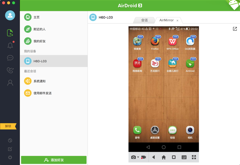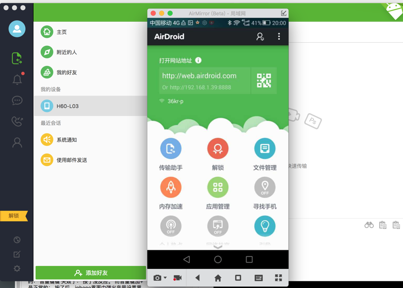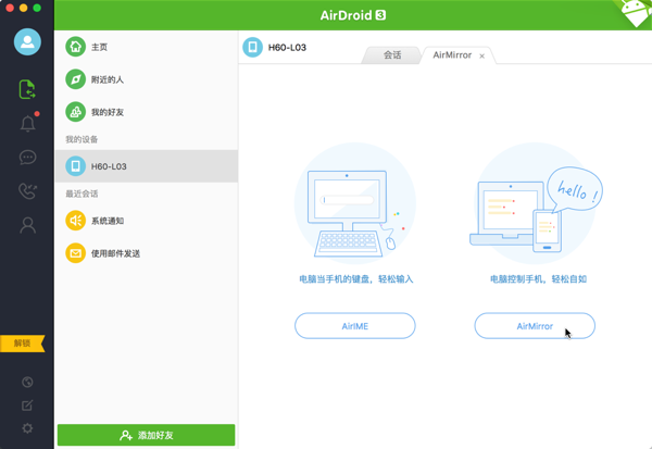 AirDroid是最好用的安卓设备管家,在电脑可以接收设备的通知、回复短信,电脑与设备高效互传文件,AirMirror更能实现电脑完全控制安卓设备。”