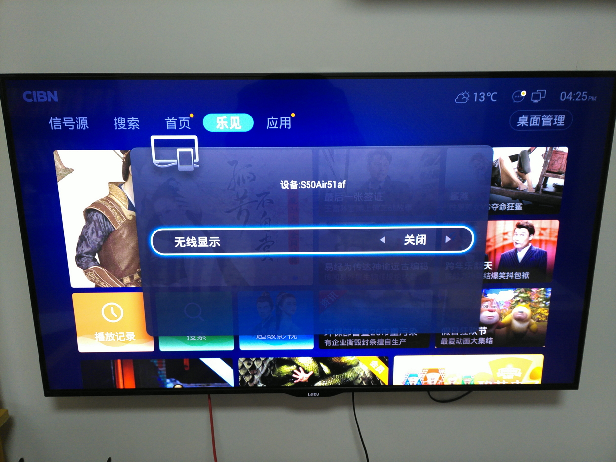 乐视电视的Miracast也是有问题的:视频播放时,有声音,但是容易花屏