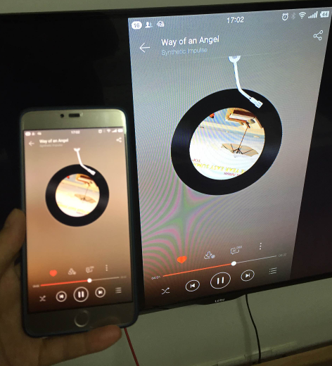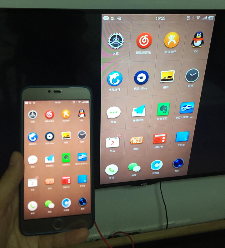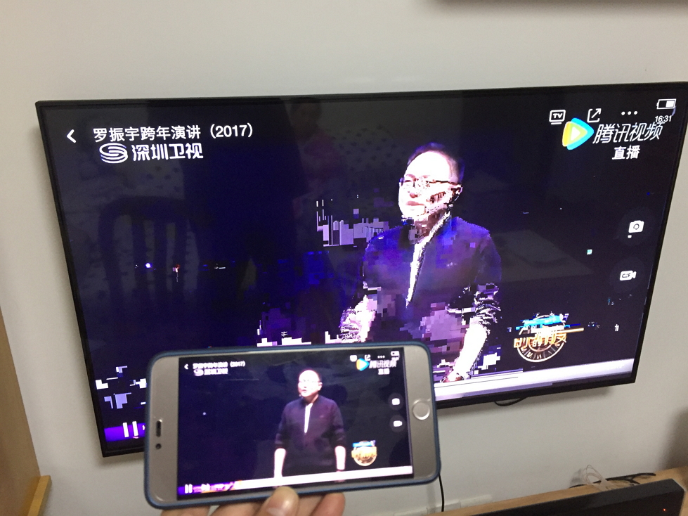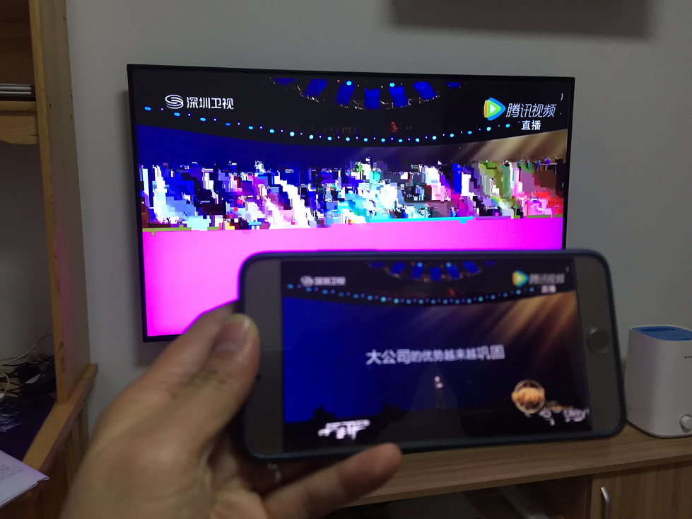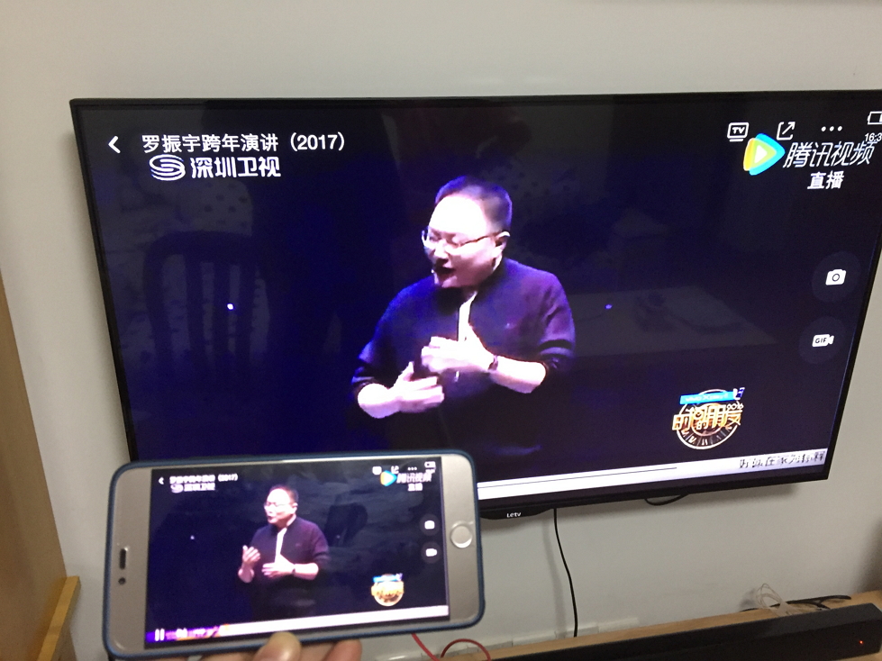 锥子安卓手机无线投影显示到乐视手机上,如果实时显示播放的视频的话,乐视电视上时不时的花屏,但是是有声音的。